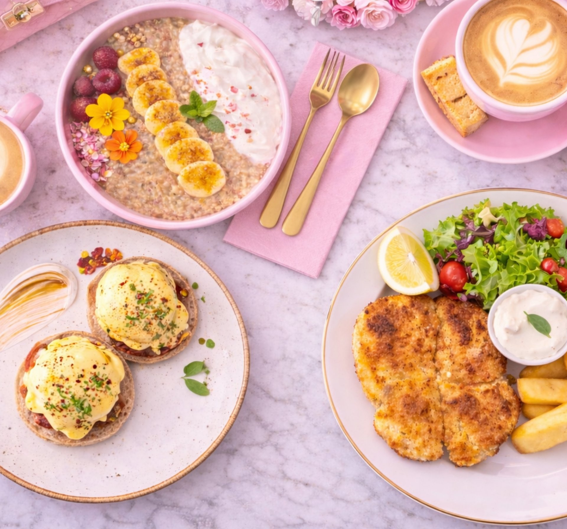 Inspired by our sister company BOA Beauty Bar of rose, blush and gold aesthetic, Vib Cafe blends beautiful interiors with thoughtfully presented dishes and drinks. The space is soft and welcoming, with warm lighting, floral touches, and elegant details that make it perfect for casual catch-ups, celebrations, content creation, or simply enjoying a moment to yourself. Every corner is designed to feel uplifting and stylish without feeling overdone. Our menu focuses on café favourites with a polished twist, from all-day breakfast and light lunches to handcrafted coffees, teas, and indulgent treats. Vib Cafe is a place to relax, connect, and enjoy a little everyday luxury